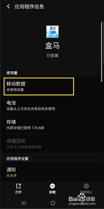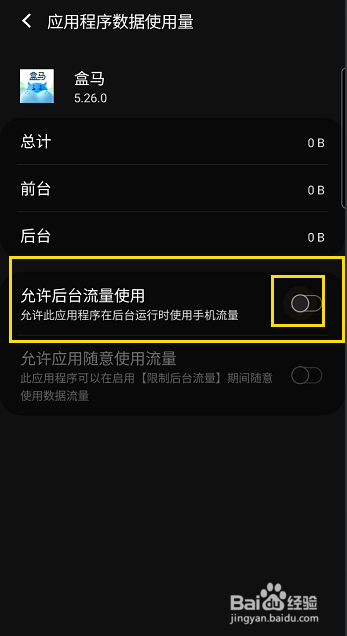 进入盒马应用程序找到移动数据点击允许后台流量使用右侧的按钮即可开启