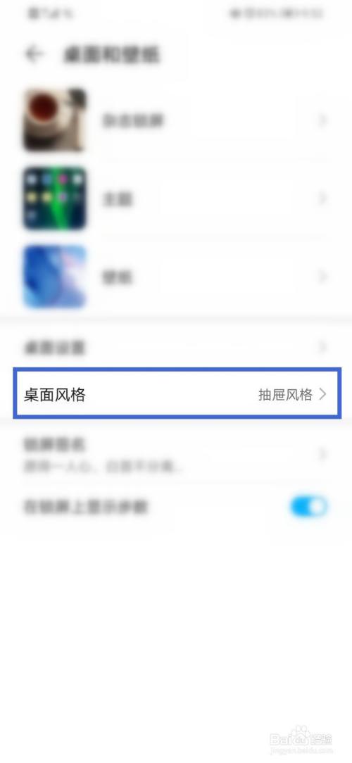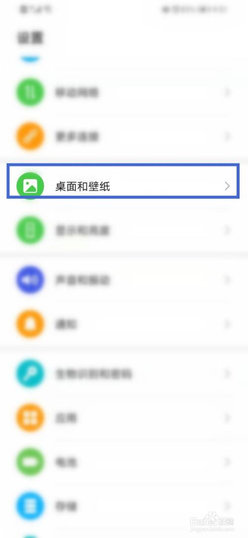 向下滑动打开的页面,找到“桌面和壁纸”字样,并点击。