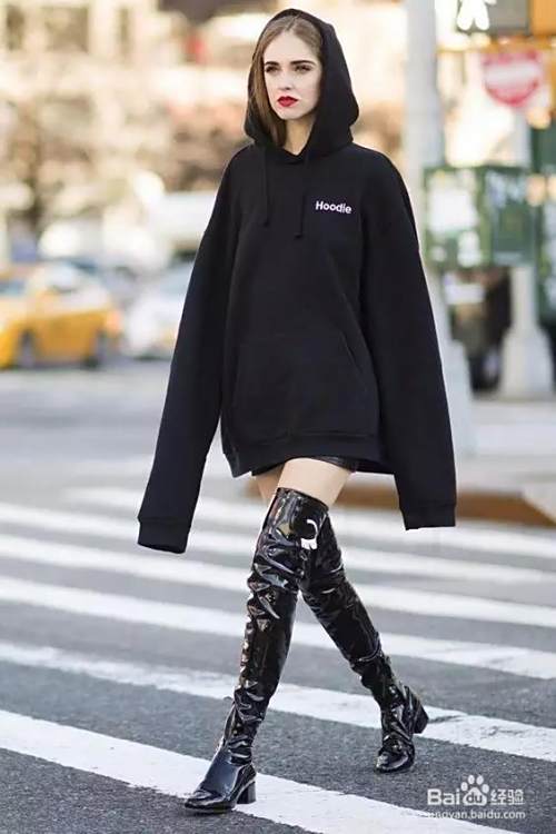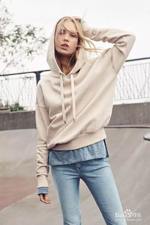 卫衣是一种比较运动的着装,但是不同的搭配,也能显甜美、温柔、活波,有多种可能。