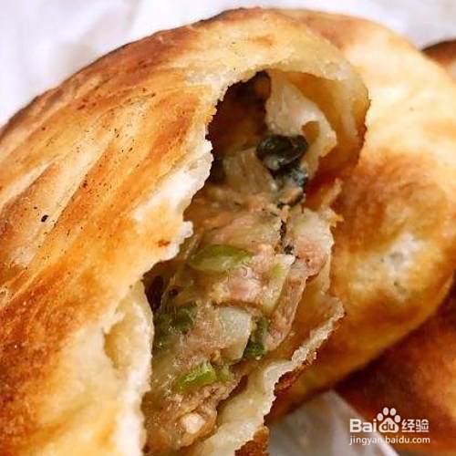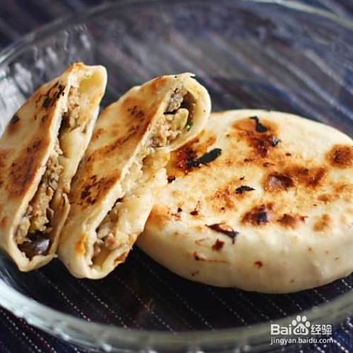 面皮放手心加入适量肉馅,按包圆包子的手法包好。