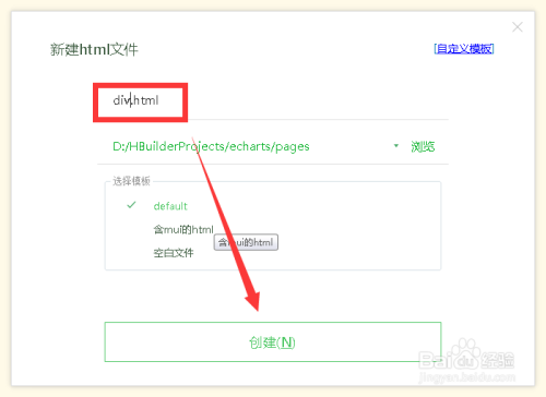 打开HBuilderX工具,在已创建的Web项目,新建一个静态页面div.html
