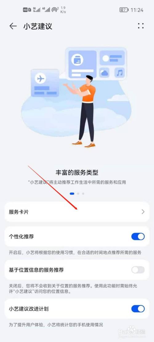 4、进入小艺建议后,点击服务卡片,然后添加即可