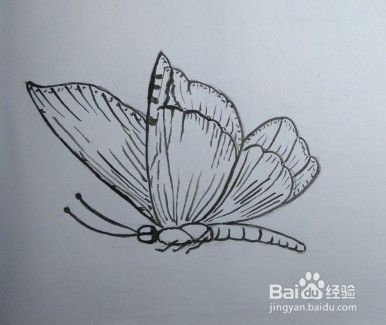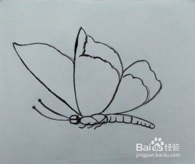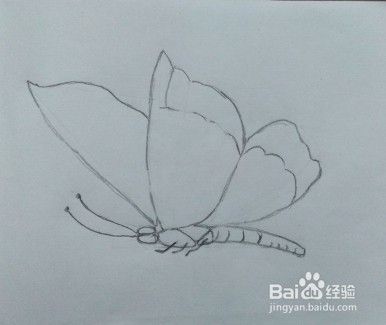 画蝴蝶身子、触角的草稿图。身子、触角都要带一点弧形哦。