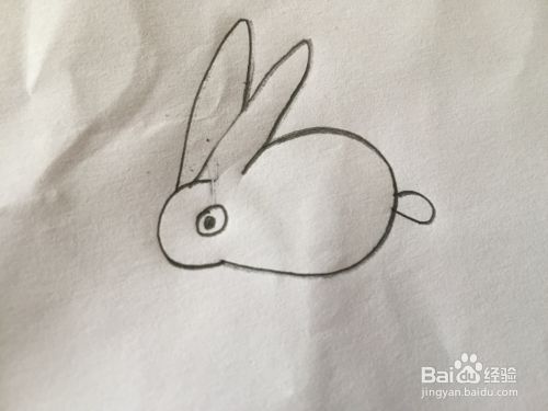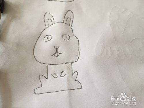 再绘画兔子长长的耳朵、圆圆的眼睛,如图。