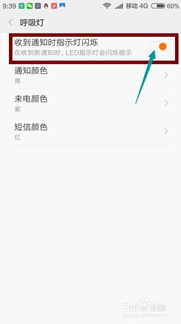 下面我们就进入了呼吸灯的设置页面我们可以关闭呼吸灯,也可以改变每个提醒的呼吸灯的颜色,让呼吸缤纷多彩,让你喜欢。