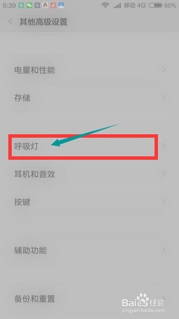 然后找到“呼吸灯”这个设置且点呼吸灯。