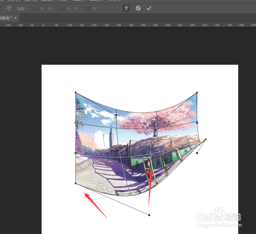 然后左键选中拖杆调整角度以及长度,移动位置更改图片变形样式