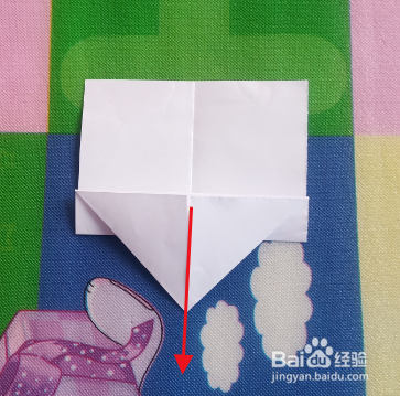 再将角沿红线向下折回来。