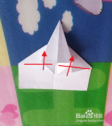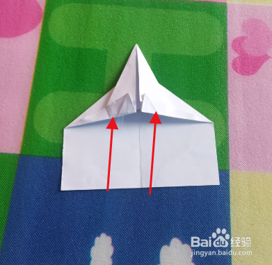将两斜边向上折,与中线对齐。注意:不要把折痕压到底。