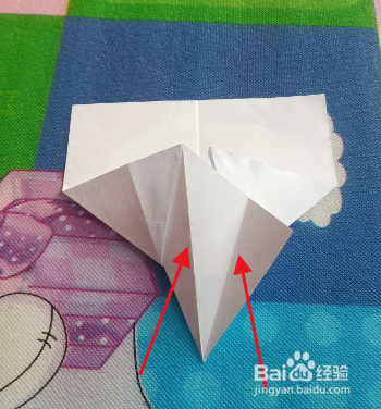 调整好位置,沿红线向上折。