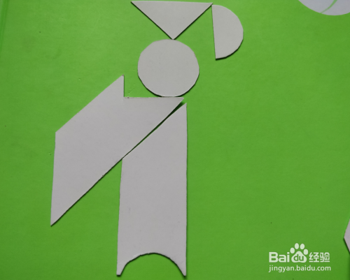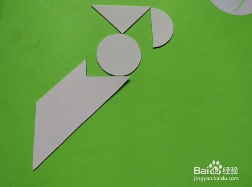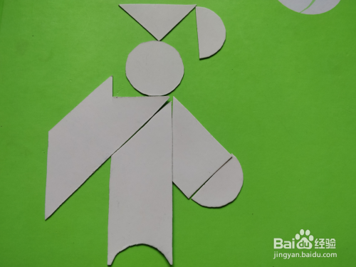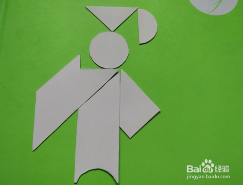 最后在梯形的右下,放上半圆形挨着,如图。站着的学士就拼好了。