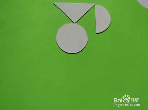 接着在三角形右侧,放上半圆形挨着,上端一齐,如图。