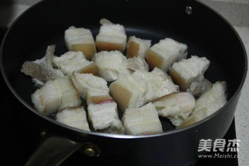 2焯过水的五花肉入锅内小火煸出多余的油后夹出。