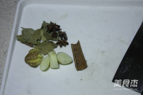 6取另一口煮锅,倒入适量的水,把上色的五花肉和香料以及卤料包一同放入锅内,大火烧开后加2勺老抽,中小火慢炖。
