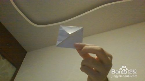 正方形的四个角。沿着折痕朝内进行两次翻折。可以参考一下图片。