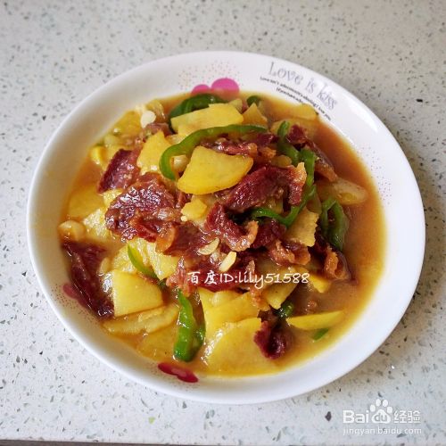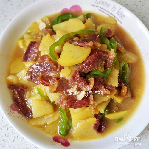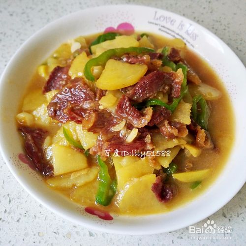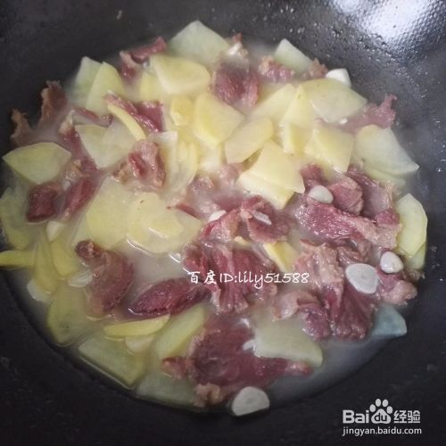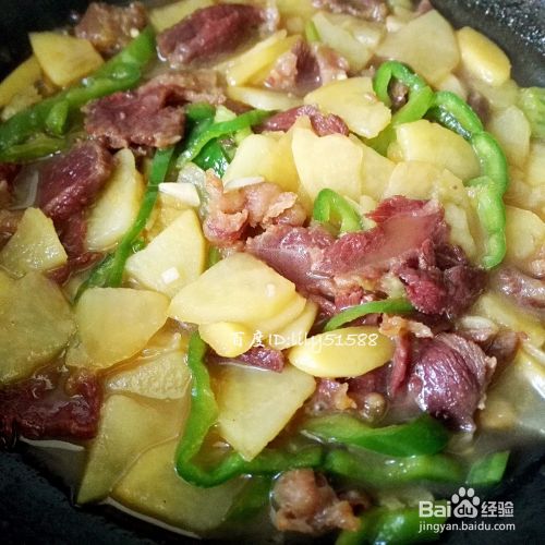 今天炒的这一道菜,土豆比牛肉好吃,因为土豆焖出来有姜的味道真是好极了。这次买的牛肉不是特别的好,筋有点太多了。虽然说牛肉有点筋咬得比较费劲,但是用它来焖土豆味确实是特别的香!