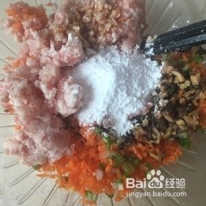 馅料中加入生粉、盐、生抽,猪肉太瘦可以加点色拉油,搅拌均匀