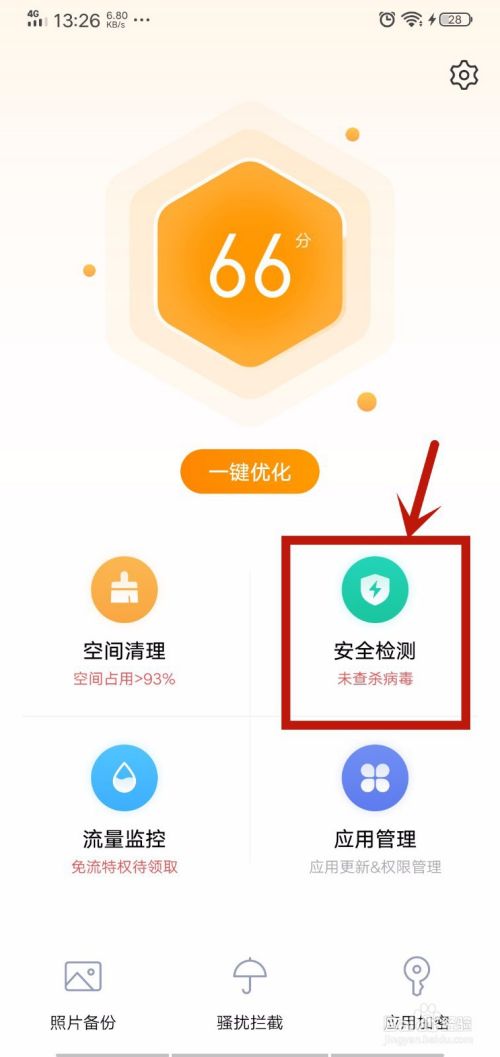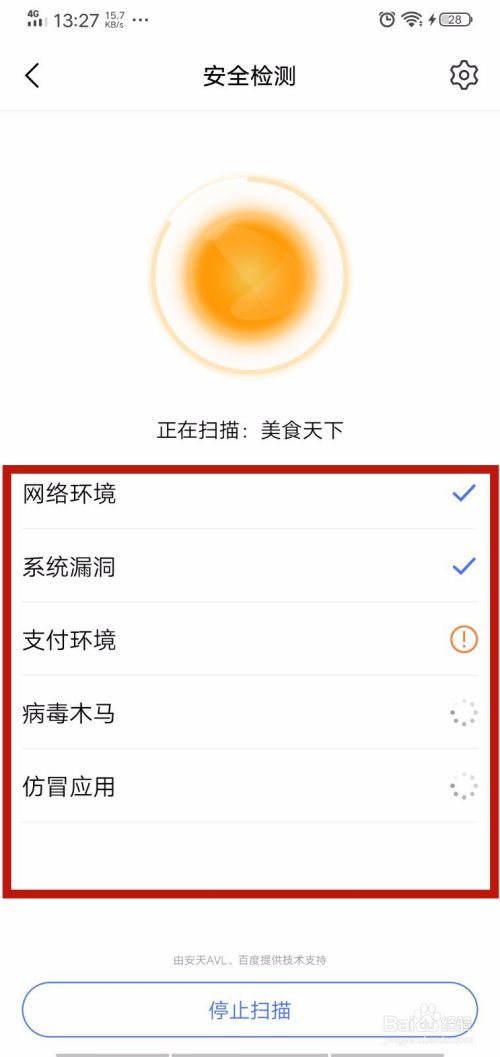 3、开始监测手机安全环境等待一会