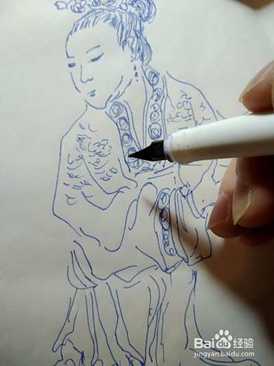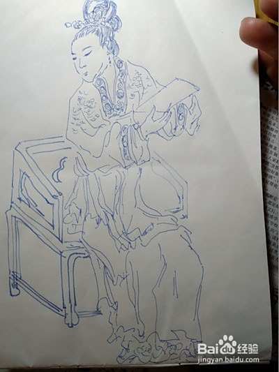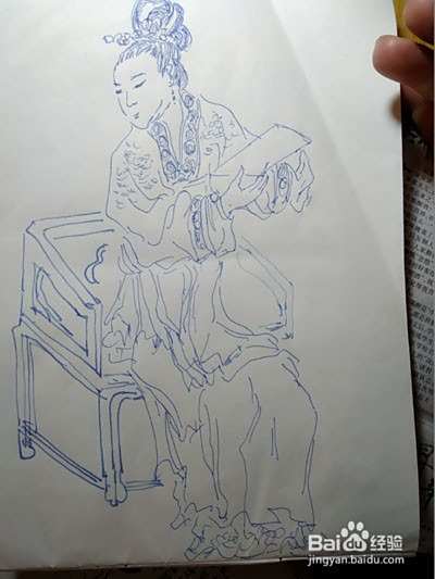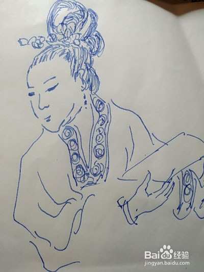 是你是古代社会的一个贵族妇女阶层,他们有知识,有文化,享受着非常富足的生活条件,下面我们用线条来画一个古代侍女,具体步骤如下,