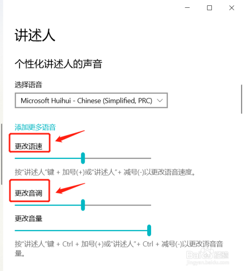 【4】还可在界面下面对讲述人语音、语速、音调进行设置,还有介绍内容的详细程度。