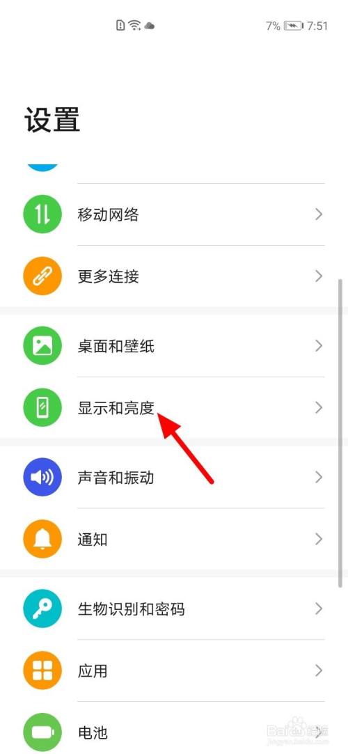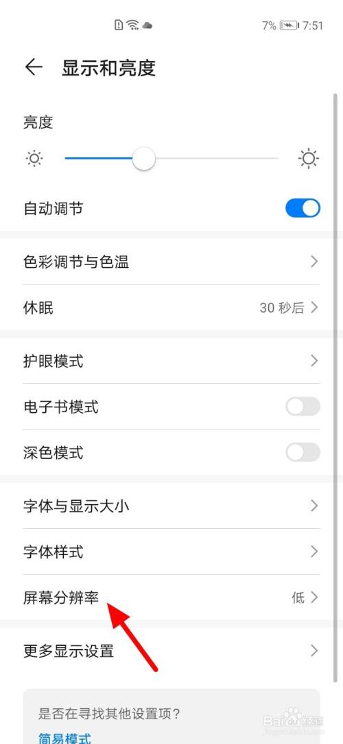 进入显示和亮度页面后,点击 屏幕分辨率;
