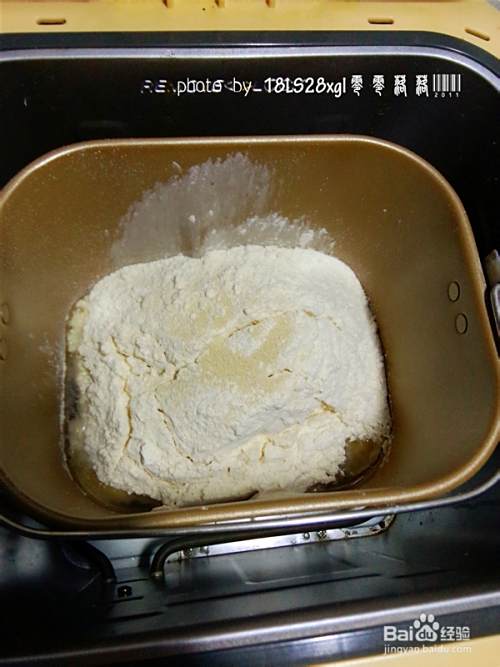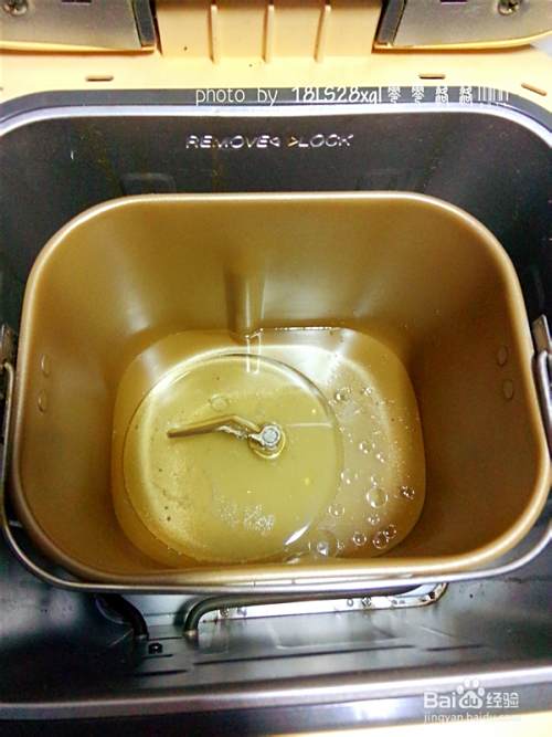 面包桶里倒入温水、白砂糖、玉米油;温水可以用牛奶代替;