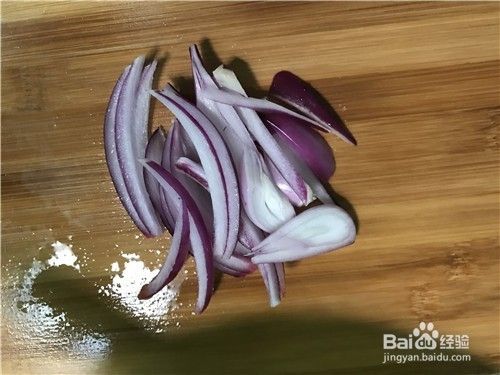 准备洋葱。接着准备适量的洋葱,将洋葱清洗干净,然后切成丝状,如图所示,这样在炒的过程中就可以让菜变得更加有味道了,也能更加香。