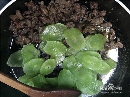 放入莴笋。接着将莴笋切成片状,然后再放入锅中,接着来回翻炒,火候不宜过大,这样才能让莴笋慢慢变熟来。等莴笋受热均匀以后,将牛肉和莴笋都翻炒在一起即可。