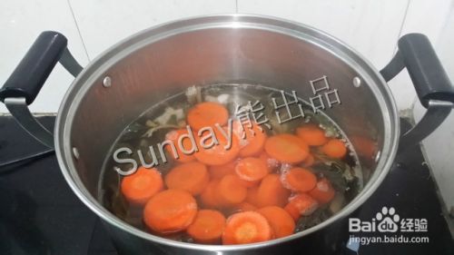 30分钟过后,把切好的胡萝卜下锅,大火煮开,转中火煮一个小时,加入适量盐调味即可。