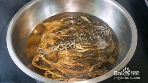 菜干一定要充分浸泡,直至菜叶子完全张开(如图),这样才能去掉藏在菜叶子里面的沙子。