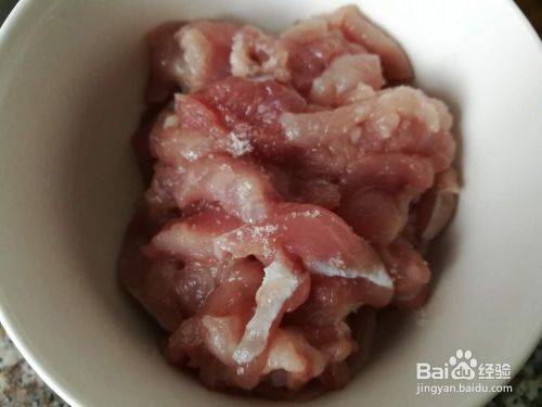 瘦肉洗净切片,撒上适量盐,搅拌均匀,腌制10分钟。