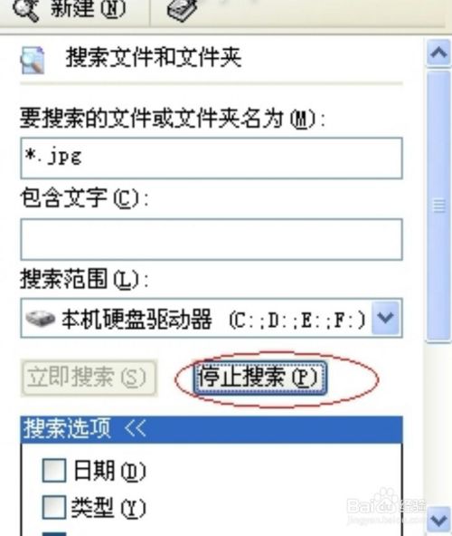 第四步,这里我们是全盘搜索的,所以小可爱去输入*.jpg 吧!然后按回车或点下面的立即搜索。