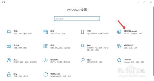 遇到这个问题是因为电脑无线网络被禁用了。打开设置界面,点击网络和Internet。