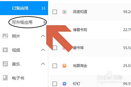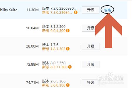 然后在所有应用列表的左侧找到“可升级应用”,见下图一...然后在对应的应用后面点击“忽略”即可;
