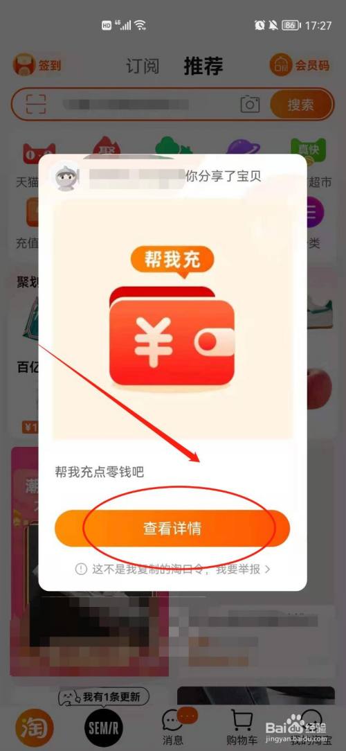 等待好友复制吱口令,并进入手机淘宝app。选择打开此口令。