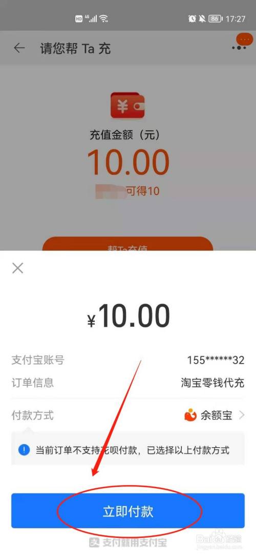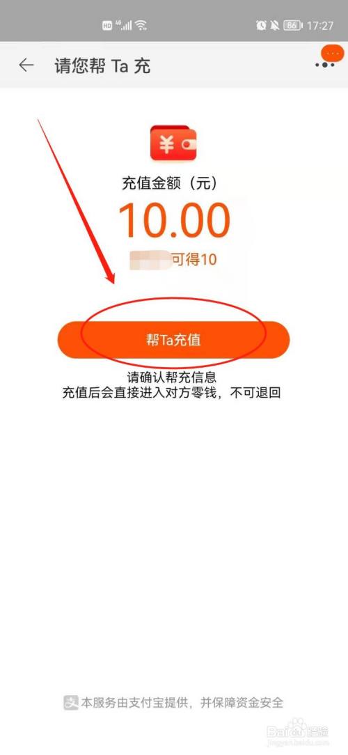 由好友确认身份,选择“帮ta充值”,完成支付即可。