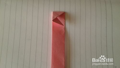 将纸条右端向左端折成一个小三角形。如下图: