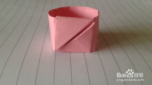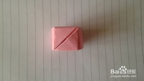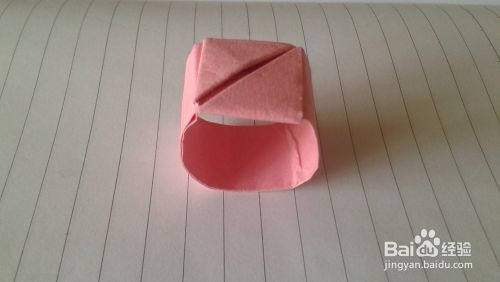 将右端小三角形插入正方形戒子面下边的夹里,戒子就完成了,很简单哟。