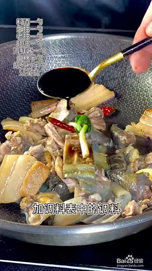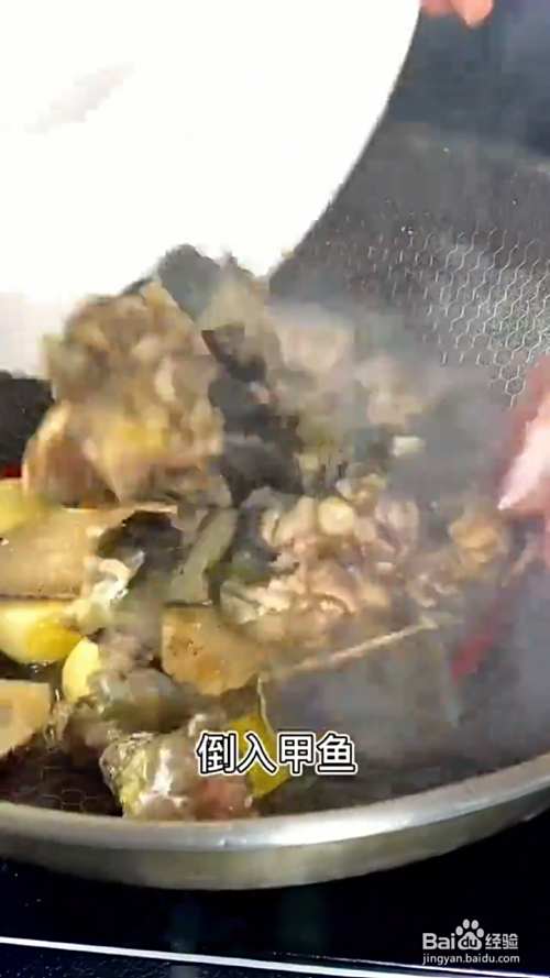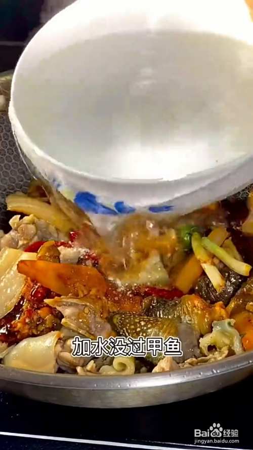 再倒入甲鱼,再加入料酒,生抽,蚝油,海鲜酱,白糖,胡椒粉,盐;再加入 清水没过甲鱼。