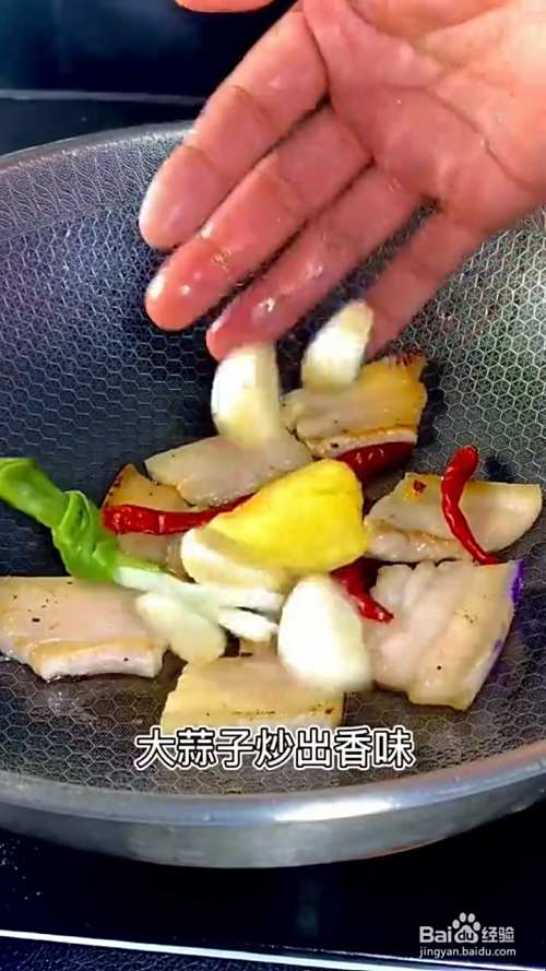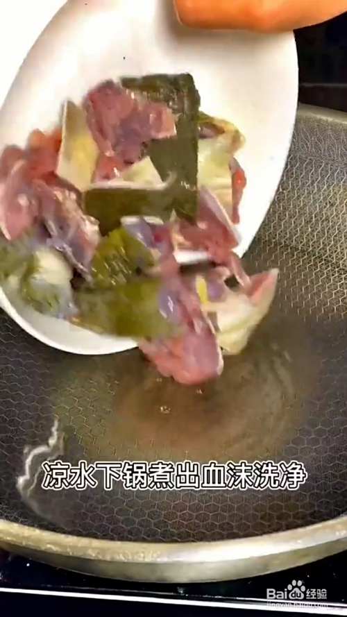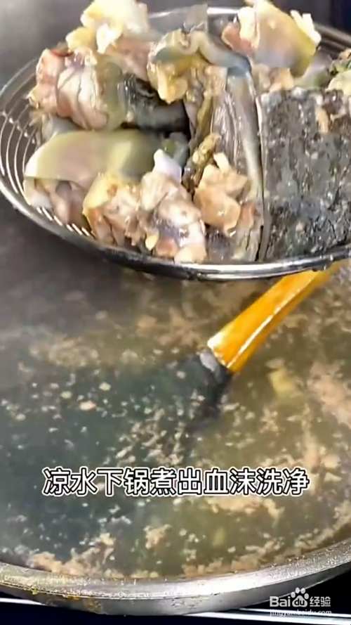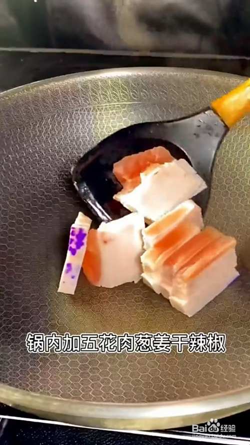 冷水下锅煮出血沫捞出,清洗干净;再起锅放入五花肉,葱姜,干辣椒,大蒜炒香。