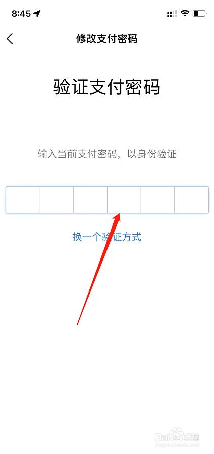 进入支付密码页面后,在弹出的页面中输入之前的支付密码进入下一步。