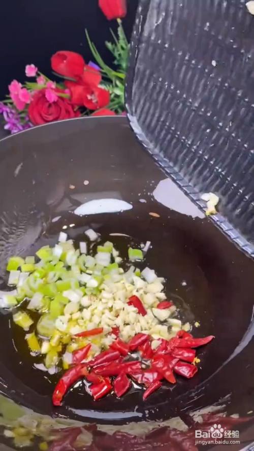 起锅烧水水开后下入土豆片,焯一分钟后捞出,投凉控干水分,然后起锅烧油,在锅中加入干辣椒,葱花蒜末,和红肠
