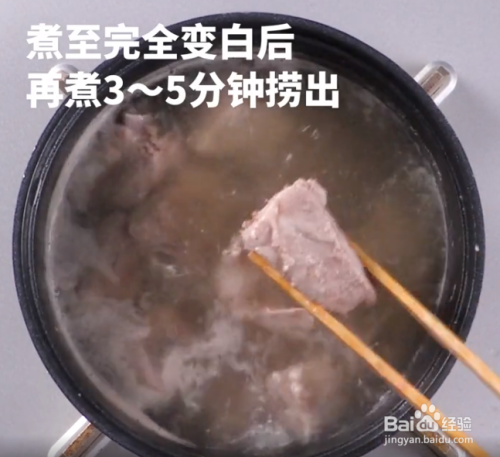 排骨表面完全变白之后再煮3-5分钟即可捞出。