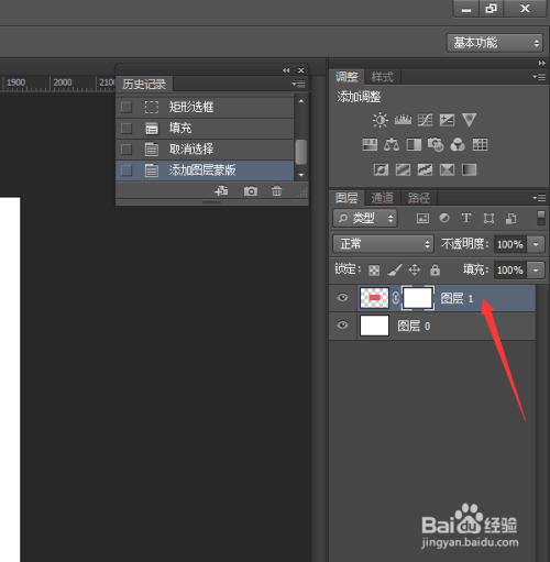 如下方箭头所示,点击一下给图层一添加了图层蒙版。