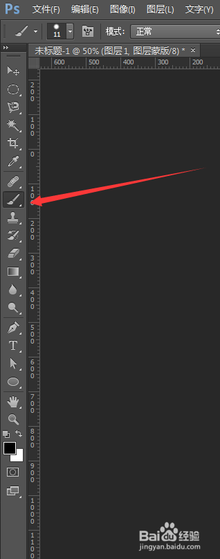选择左边工具栏的画笔,在蒙版上绘制。