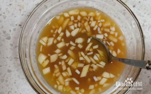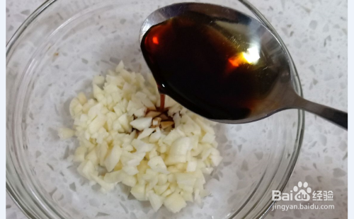 蒜末放入碗中准备调汁,加上生抽1勺和半勺蚝油调味