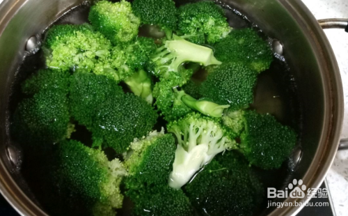 起锅烧水,水烧开后放入西兰花,焯水到七八层熟,捞出备用