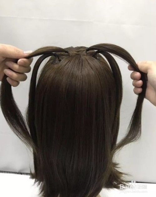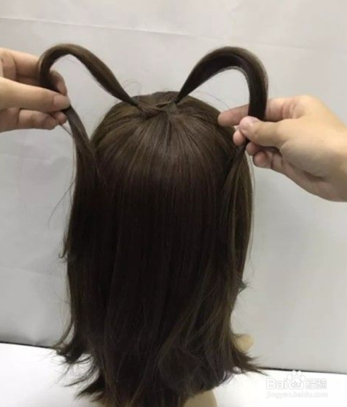 在头顶上抓起两小撮头发,分别用橡皮筋扎起来。