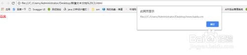 用户点击浏览器上的"百度"链接弹出窗口,显示出链接中的完整地址如下图