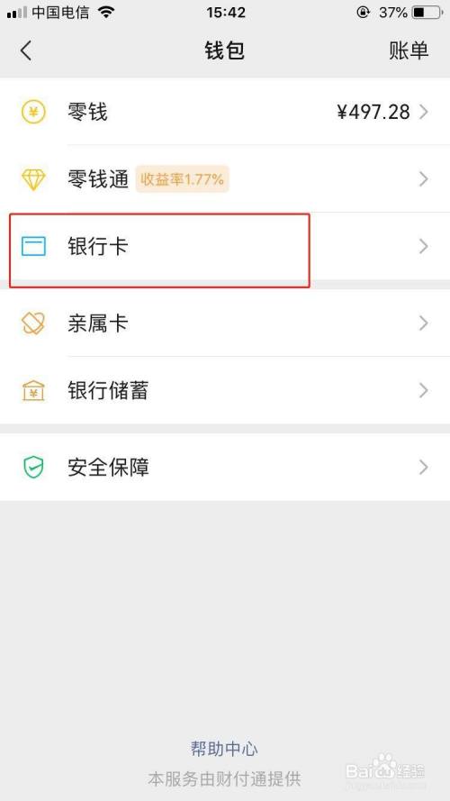 点击银行卡,可以看到自己绑定了哪些银行卡。